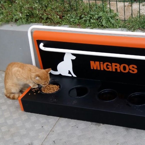 Mağazaların etrafındaki sokak hayvanlarının temiz ve sağlıklı bir ortamda beslenebilmesi için Migros ve Macrocenter mağazalarının önüne özel tasarım mama kapları yerleştirdik. Sokak hayvanlarının fazla olduğu bölgelerdeki mağazalarımızdan gelen talepler doğrultusunda mama kaplarını mağazamıza tahsis ediyoruz. Bu mağazalarımız, kapılarının önünde bulunan mama alanlarındaki kedi ve köpek mamalarını düzenli olarak tazelemeye özen gösteriyor.